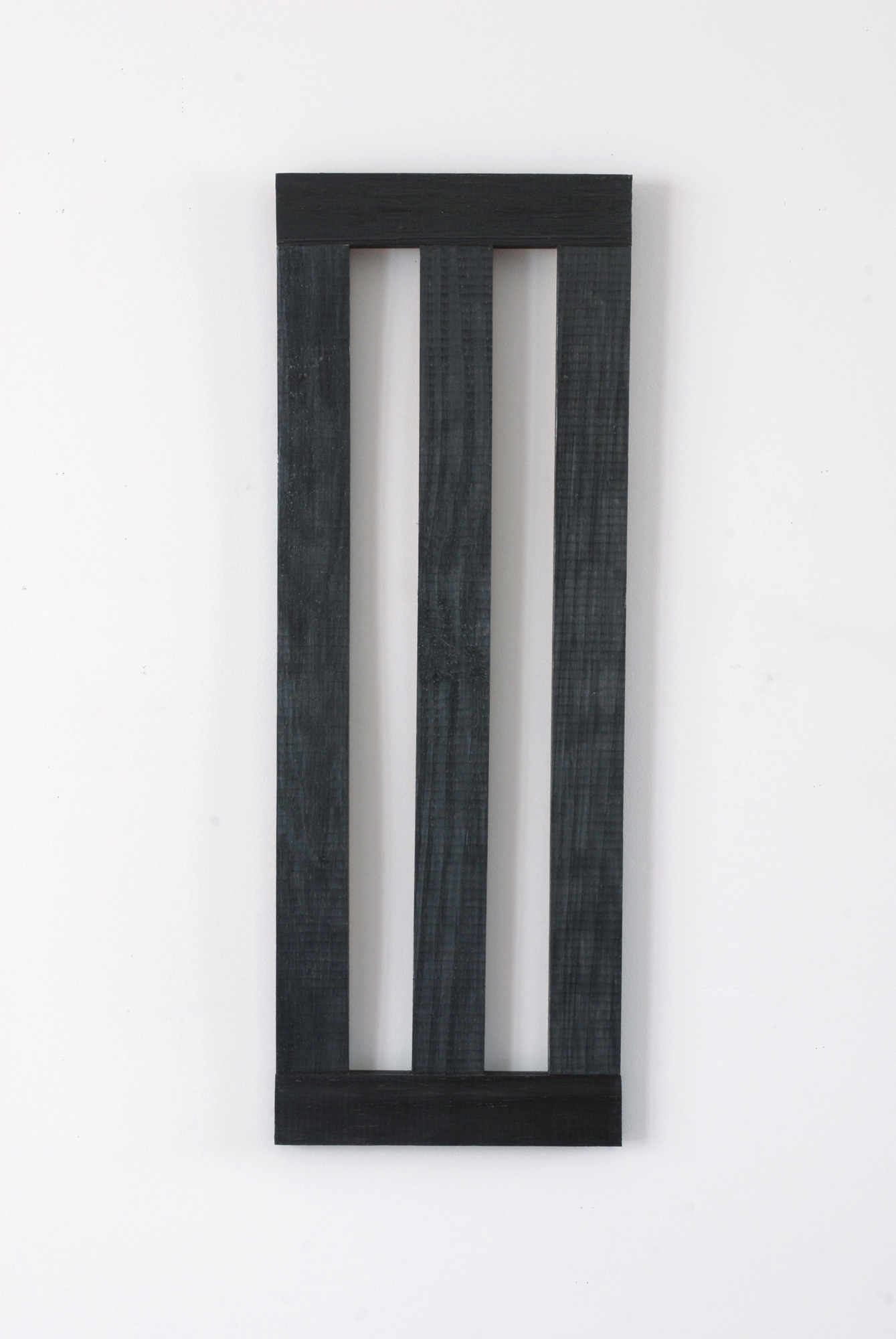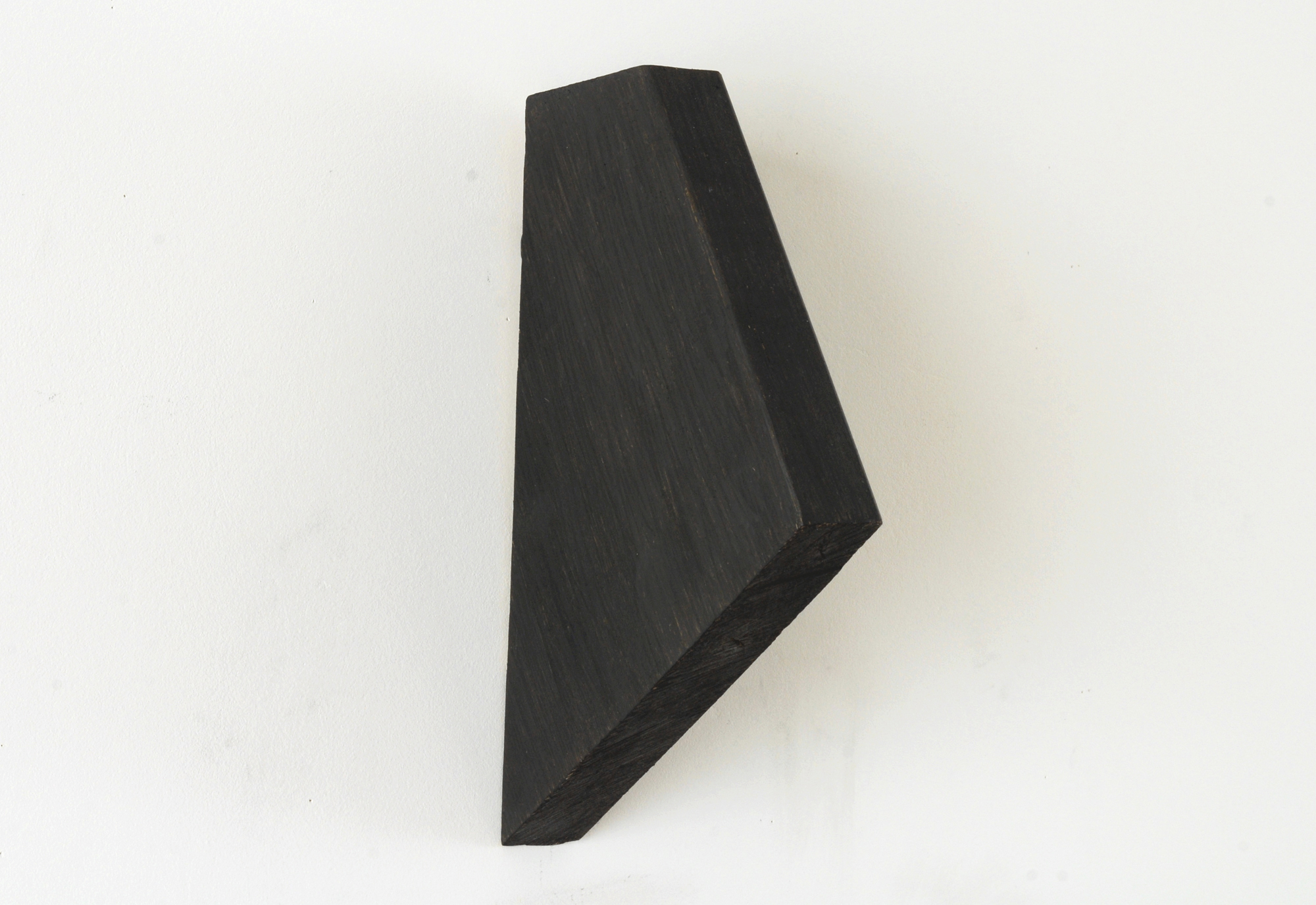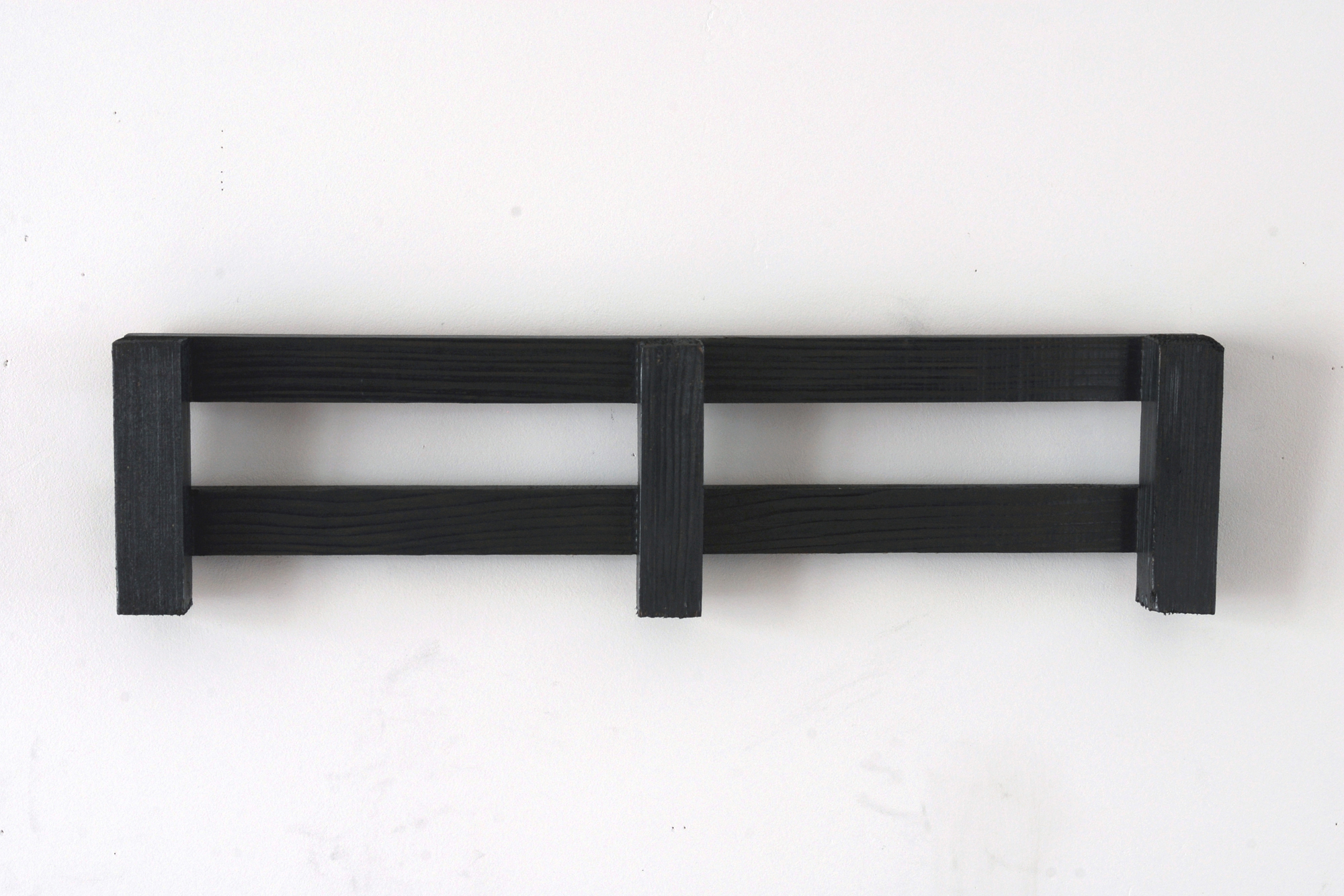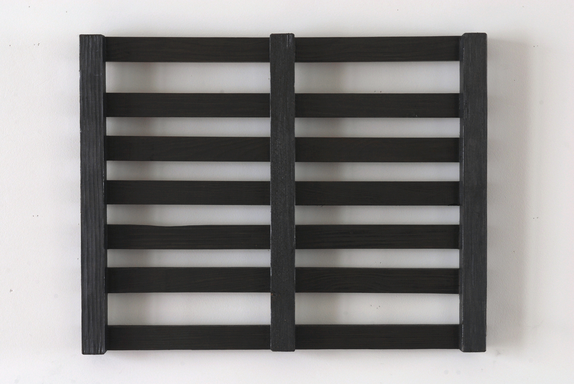 On the way from the flat to the studio, I pick up different things, and I begin to take an interest in used pieces of wood, whose original function is not very obvious. I am particularly careful in my choice of dimensions and shapes. After various experiments, I begin to cover the visible surface very completely with graphite. The wood is hidden under this grey layer, which is very sensitive to light reflections. The pieces of wood have a second life, saved in extremis from destruction, probably by fire. They are then hung on the wall, present in their erasure. I think that the gesture of covering the surface with graphite is similar to that of the photographer who unifies all the surfaces of matter present in reality, and which become, in the picture, the surface of photographic paper.