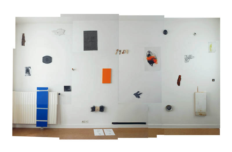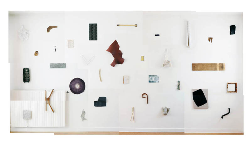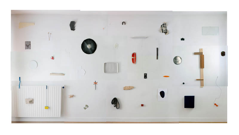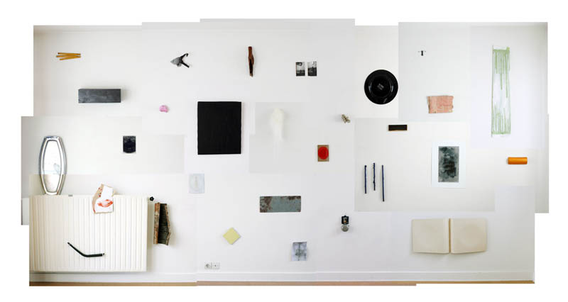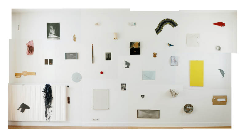 I collect things gleaned here and there, chosen for their particular qualities, size, colour, but also silence or enigma. Then begins the work of composition on the wall of the studio, which continues while I make new discoveries. Numerous attempts, elements are removed, added, moved, transformed. An impression of flow, which would have frozen like life in a photograph, is given by these compositions. A meticulous description of all the elements composing each of these 5 Walls accompanies them.