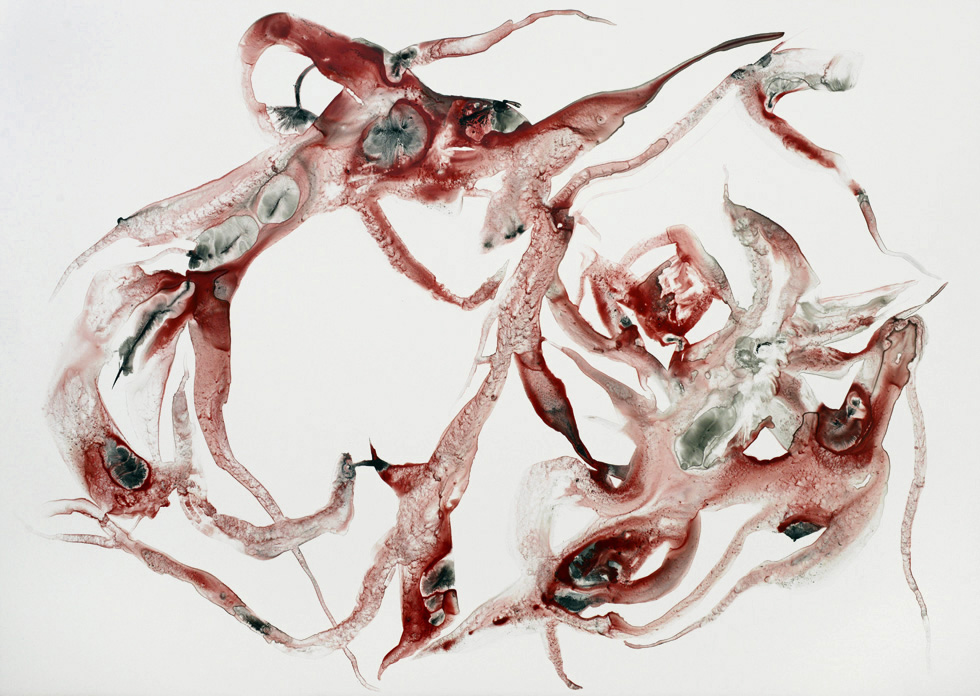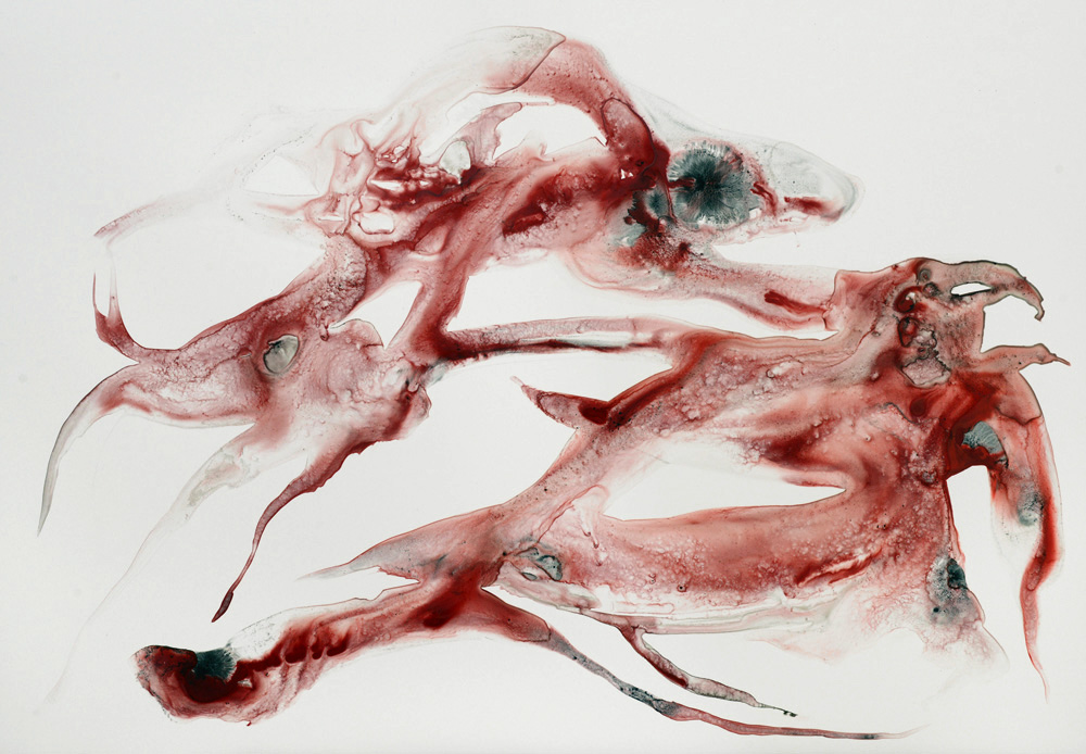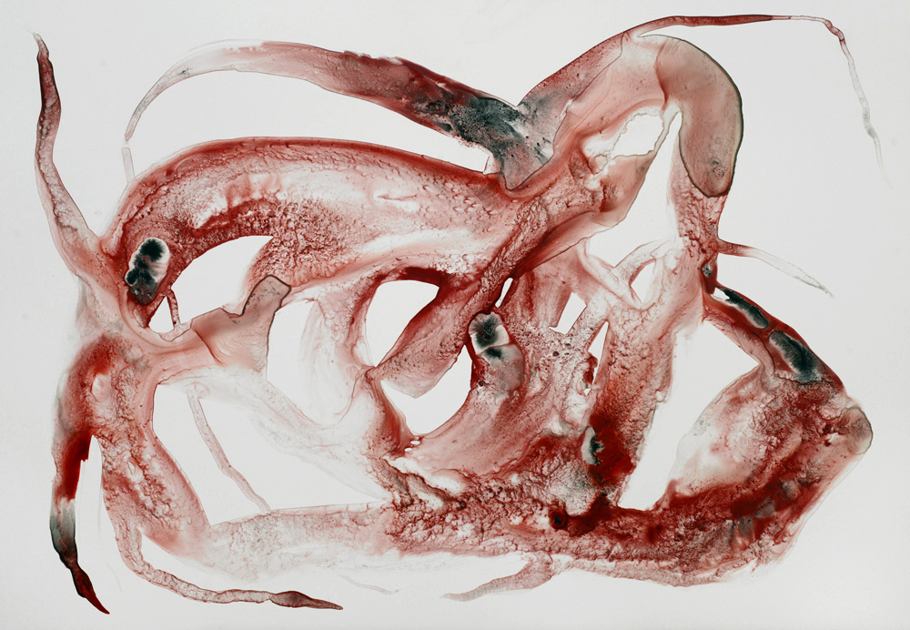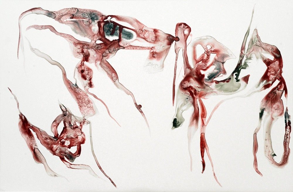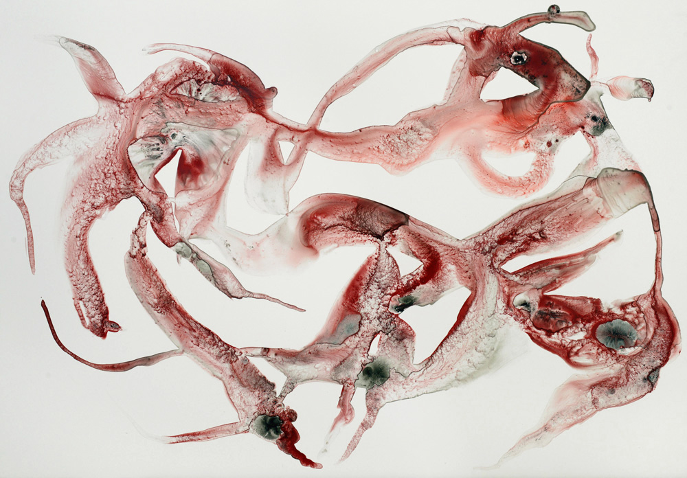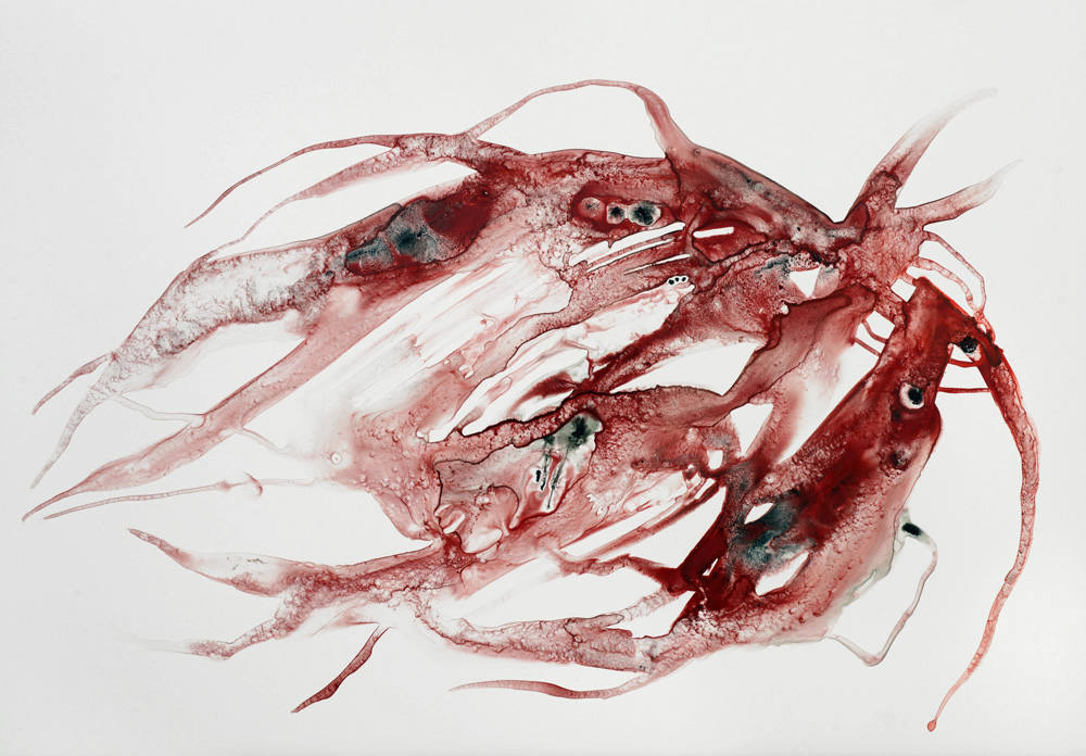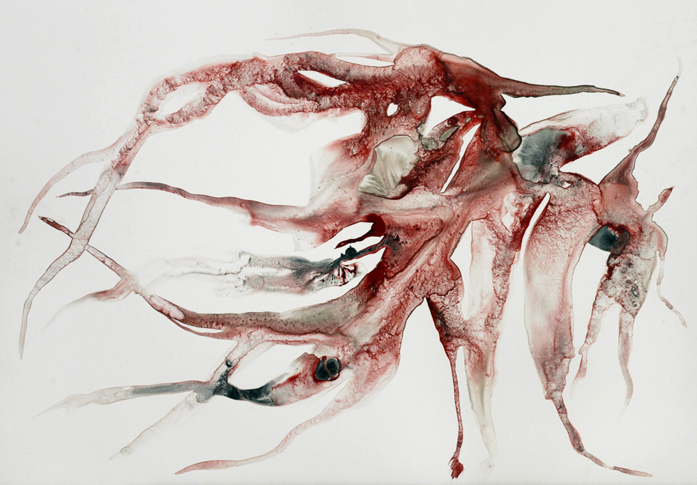 Formes flottantes d’organismes improbables encore vivants mais à vif, la peau ne les protège plus de l’extérieur. Vie fragile, menacée, dans l’élan, malgré tout.