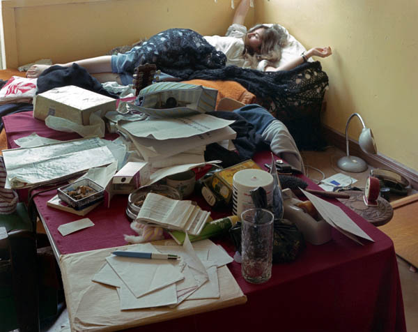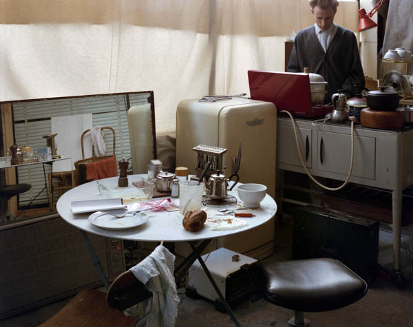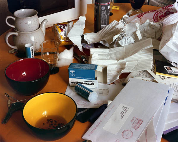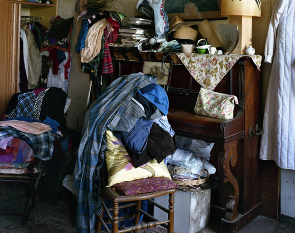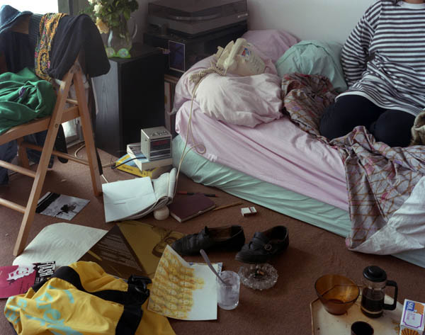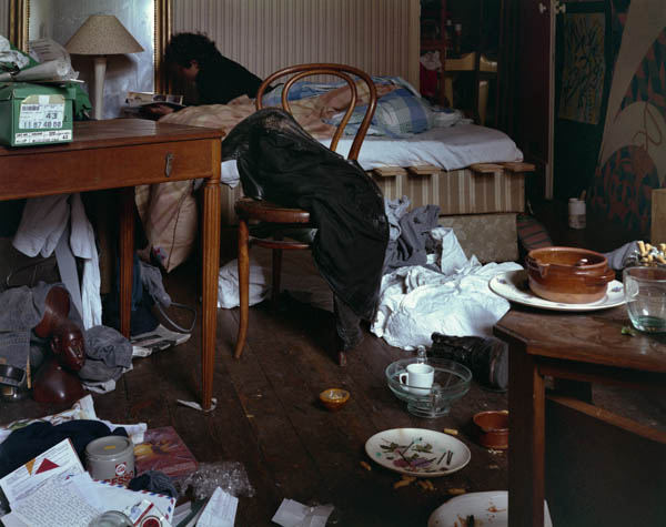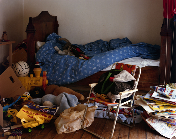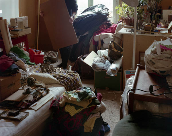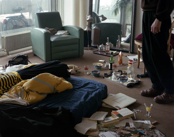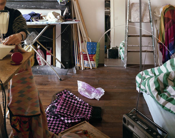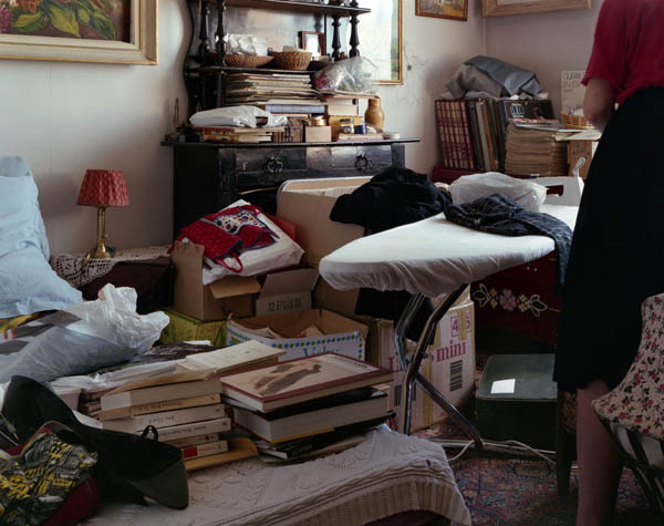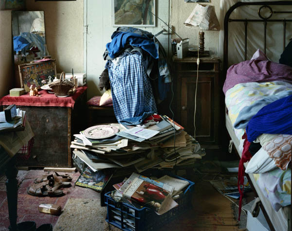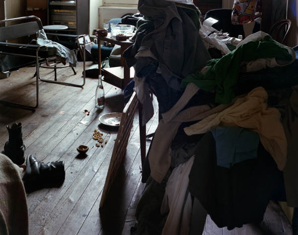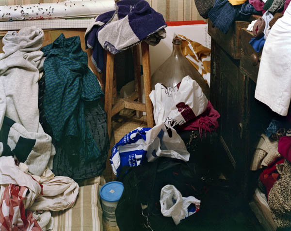 Suite aux paysages en transformation, mon intérêt se porte à nouveau sur ce qui n’est pas fixe, ce qui ne s’est pas figé dans une forme ou devenu immuable, ces désordres. Intérieurs, où la structure fixe, architecture, disposition des meubles, est tenue à distance, est contestée par les objets, choses, vêtements posés ici ou là, sans aucune volonté de composition. Je relève ces états. L’écriture photographique fait que de nombreuses fois, on m’a demandé si ces photographies n’étaient pas des mises en scène. Quant on fait une photographie, on réalise un processus de recomposition en temps réel. Et c’est ce qui donne l’impression d’une possible mise en scène. La façon de composer avec les couleurs participe aussi de ce sentiment d’être face à une recomposition.