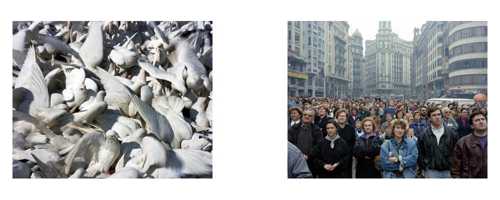 Associer plusieurs photographies pour faire une oeuvre commence avec le deux. Les images ne doivent pas être si parfaites qu’elles se suffiraient à elles mêmes. Il m’a donc fallu apprendre à les faire de telle manière qu’elles puissent s’associer les unes aux autres autant par ce qu’elles montrent et leurs couleurs que par ce qui leur manque. Une sorte d’écriture silencieuse est déchiffrée par l’oeil du regardeur.