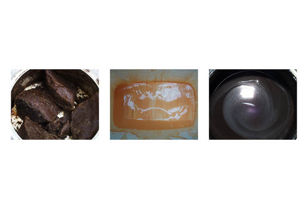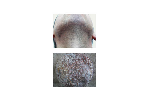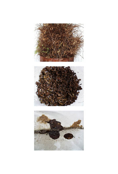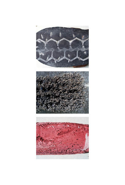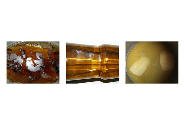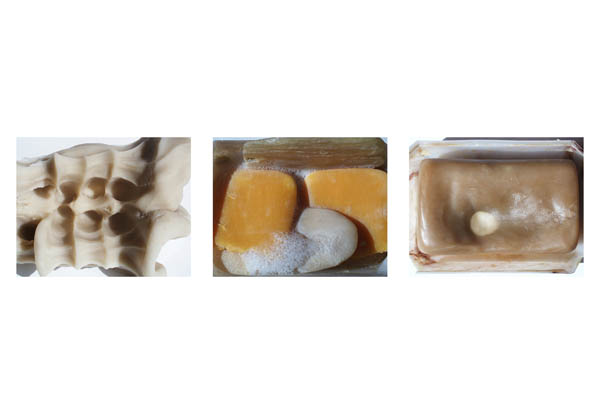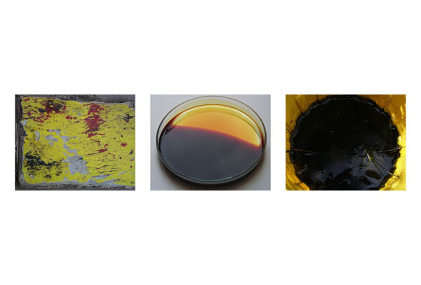 Une commande à l’origine pour une œuvre installée à Pau dans une école d’ingénieur en processus industriels. Après tout, ils travaillent pour nous, voire contre nous, si l’on pense à toutes ces molécules qui sont venues encombrer l’espace de la production industrielle ces dernières décennies. Mais que peut faire la photographie, juste flirter avec les surfaces de corps incertains, aux chimies invisibles. A l’époque de cette crise dite de la vache folle, ce n’est pas la photographie qui pourra nous renseigner sur la présence ou non de prions dans notre viande. J’explore la maison, comme toutes les maisons, elles mettent nos corps en contact avec des matières, qui touchent nos peaux, que nous respirons, mangeons, ou simplement regardons. Je constitue une décomposition en éléments simples de cet univers proche, une matière par image, et je recompose des petits ensembles qui reconstituent un environnement parfois énigmatique. Ces simples nous entourent dans la salle d’exposition. Et dans l’école, j’installe quelques ensembles en espérant que ces futurs ingénieurs se poserons quelques questions sur ce qu’il adviendra des produits qui sortiront de leurs processus industriels et auxquels ils seront eux-mêmes individuellement confrontés par la suite.