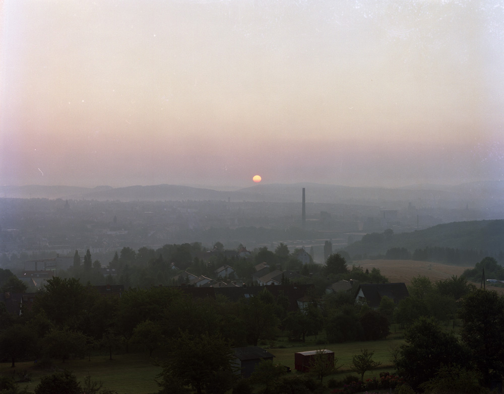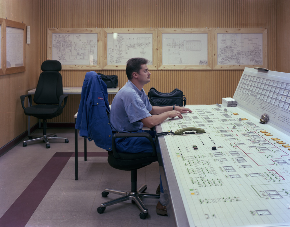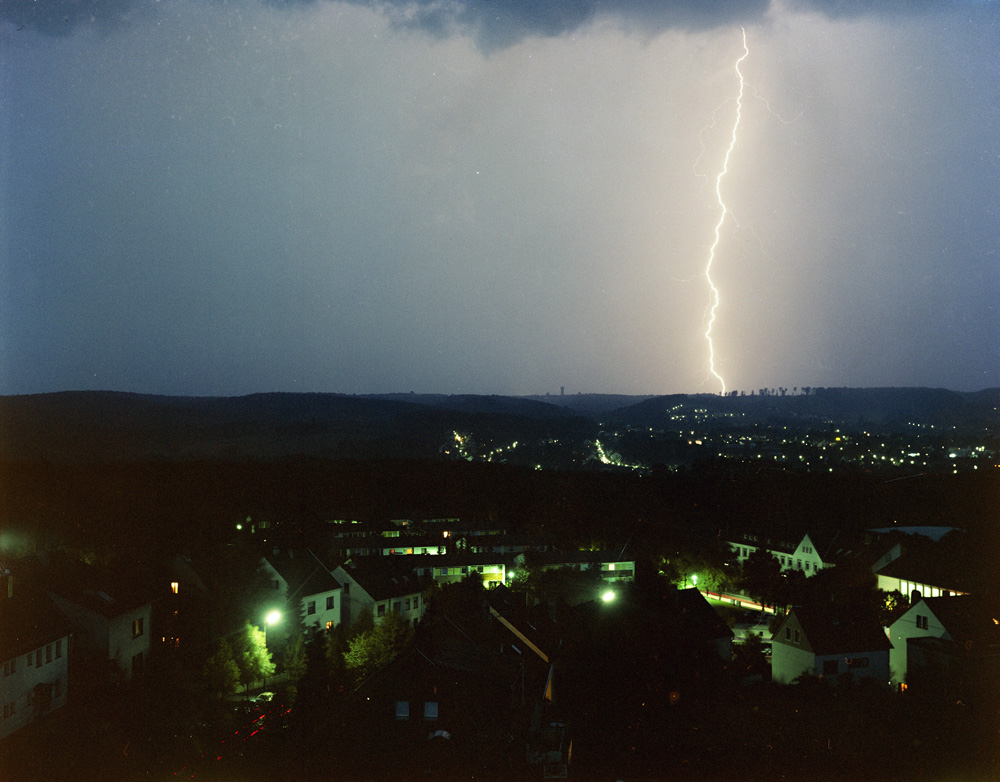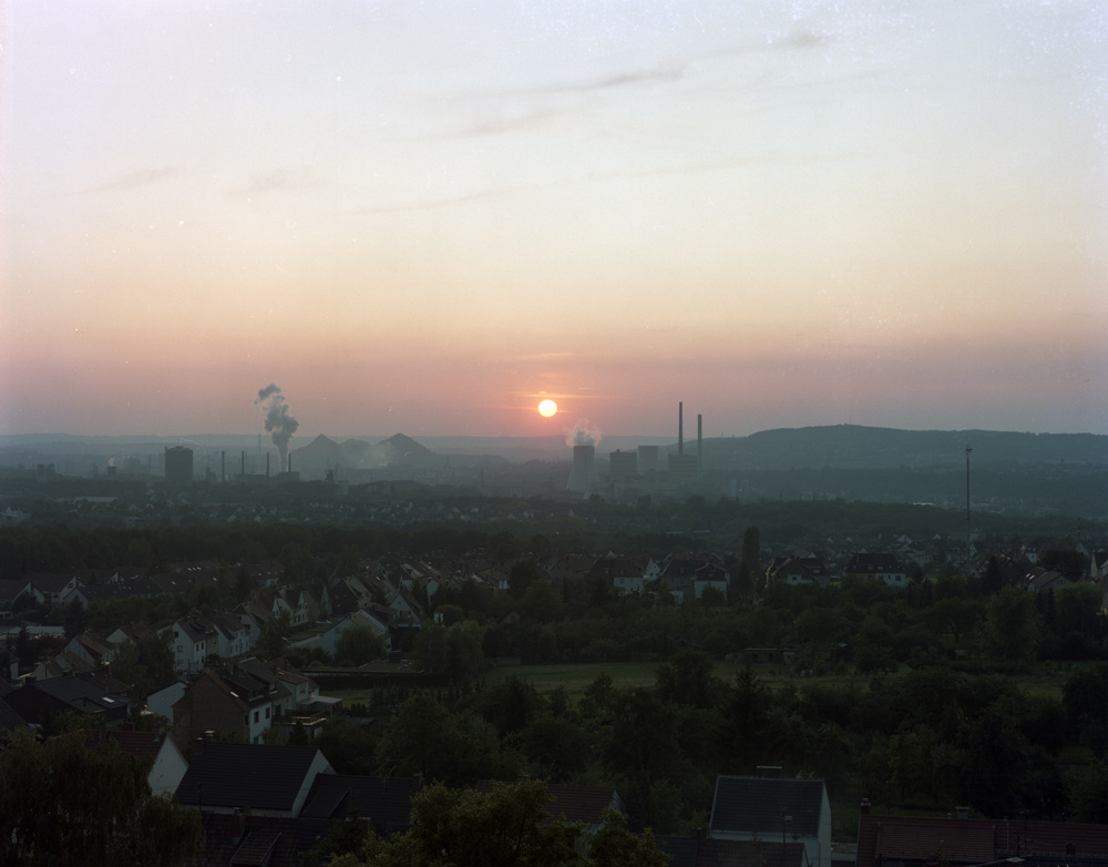 Commande du Stadtwerke Saarbrücken, le fournisseur d’énergie de la région, à l’initiative de Kasper König. Le sujet: une centrale thermique incluant quatre commandes in situ à des artistes. La commande photographique vient dans un deuxième temps. Je réside solitaire dans un château d’eau, forcément au sommet d’une colline, vue sur le paysage industriel imprenable, en première loge pour contempler les orages. Je mêle les différentes composantes liée à cette commande et je constitue un ensemble de 24 photographies, méditation sur ma présence en ces lieux dévolus à la production d’électricité.