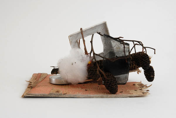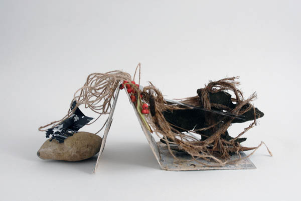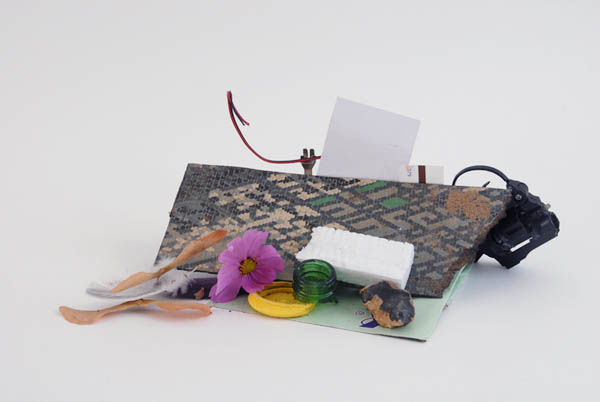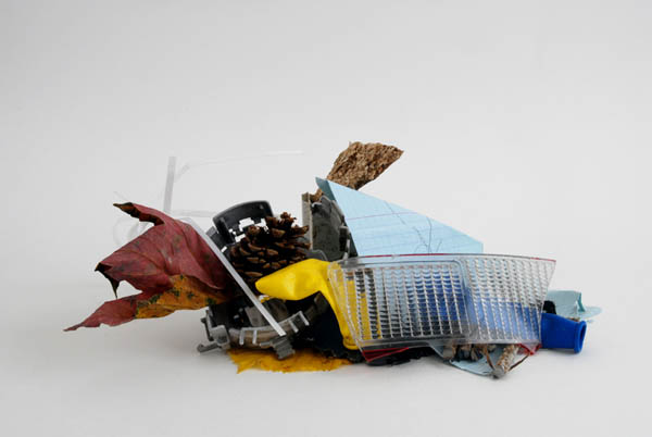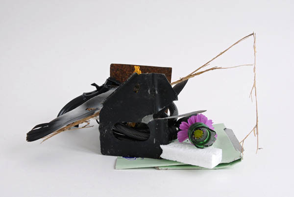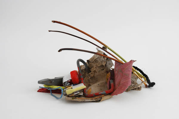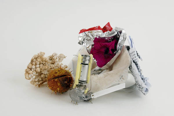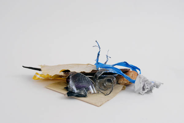 Pendant quelques jours, sur le chemin entre l’appartement et l’atelier, je récolte des choses tombées, jetées, cassées. Elles s’amassent dans le sac que je tiens à la main. Arrivé, je déballe et commence le processus photographique. Sur un fond neutre au bord de la fenêtre, je place un élément, le photographie, j’en ajoute un autre, nouvelle photographie, et ainsi de suite, jusqu’au moment ou je décide d’arrêter, et parfois de recommencer. Pour finir, je jette la récolte du jour. Faire avec rien, sans argent, sans voyager à la recherche de l’extraordinaire, juste ici, des choses jetées, trouvées, mélange de nature et d’industrie. Rédimées.