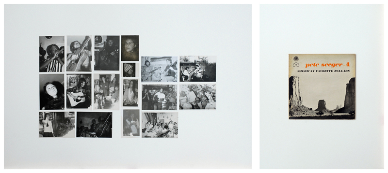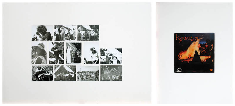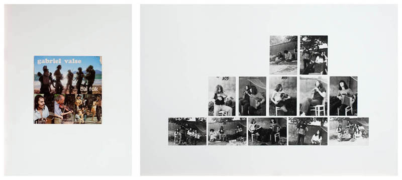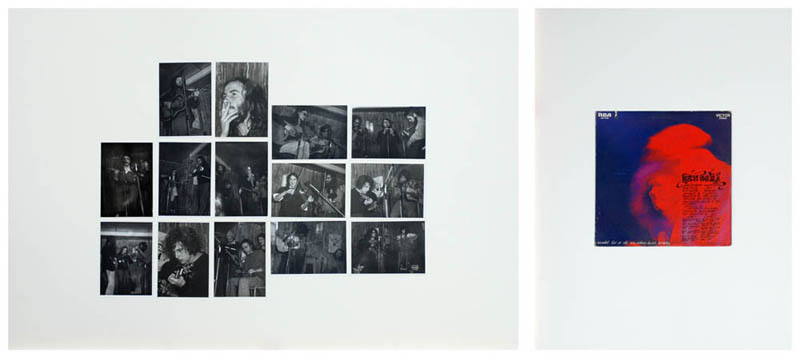 Je retrouve à l’occasion d’un de mes derniers séjours dans la maison de famille, les boites des photographies que je faisais et tirais dans un petit labo installé dans le sous-sol. Conservées depuis le début des années 70, elles contiennent des tirages porteurs de leur âge et révélateurs de mes premiers essais. C’est l’ensemble concernant les situations liées à la musique qui a retenu mon attention. J’ai réalisé ces collages à partir des épreuves trouvées, et chacun d’entre eux est lié à une circonstance particulière qui se trouve associée à un disque. Un contraste s’établit entre l’amateurisme du photographe et des musiciens, et le professionnalisme, la célébrité des disques et des musiciens mis en vis à vis dans chaque diptyque.