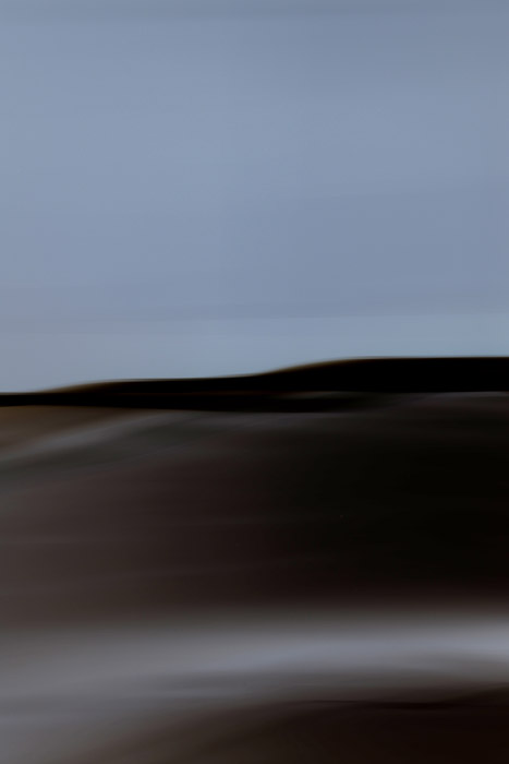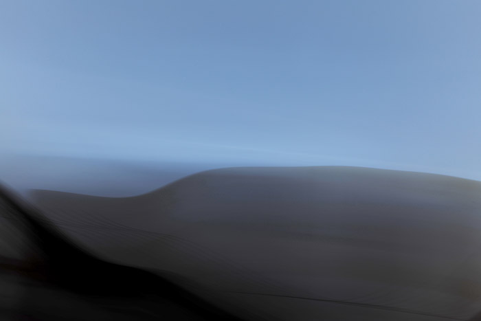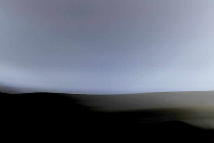Ces paysages fictifs retransmettent l’impression belle et troublante d’une terre sans plantes, sans humains, un désert minéral ou encore à l’état gazeux, faisant songer à un début ou une fin du monde.